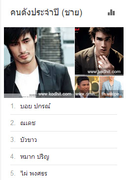 [dropcap type=”circle” color=”#ffffff” background=”#FF0082″]2.[/dropcap] คนดังประจำปี (ชาย)