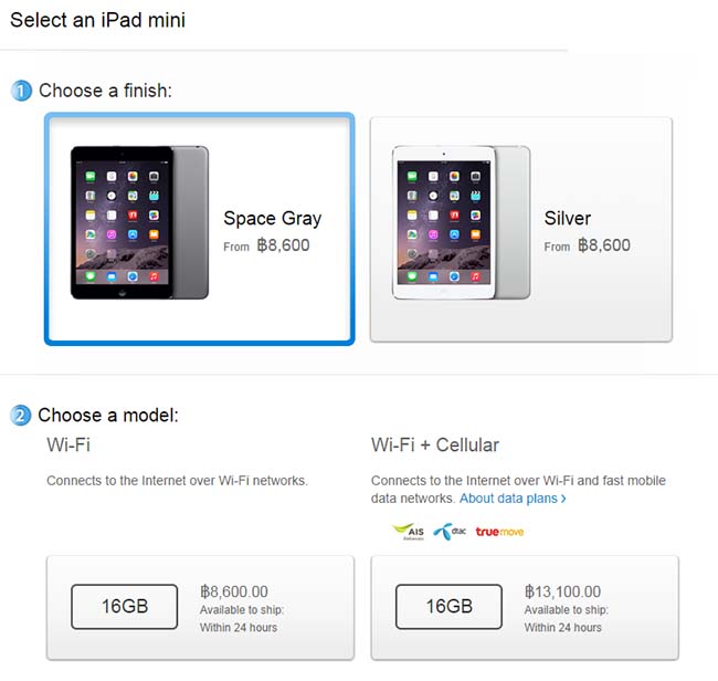 iPad mini 2 ลดลง 100 เหรียญ ไปอยู่ที่ 299 เหรียญ ส่วนราคาไทยอยู่ที่ 10,400 บาท สำหรับรุ่น 16GB และ 12,200 บาทสำหรับรุ่น 32GB ส่วนรุ่น LTE อยู่ที่ 14,900-16,700 บาท สำหรับรุ่นความจุ 16GB-32GB